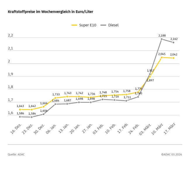 Der Iran-Krieg erreichte am gestrigen Mittwoch eine weitere Eskalationsstufe. Dies ließ nicht nur die Preise an den Ölbörsen, sondern auch die Inlandspreise erneut steigen. Angriff auf Irans Energieanlagen führt zu Vergeltungsschlägen Staatliche iranische Medien meldeten am Mittwochnachmittag, die Anlagen am iranischen Erdgas-Feld South Pars seien angegriffen worden. Dadurch sei es zu einem Brand gekommen,…
