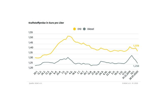 München (ots) Autofahrer wird es freuen: Die Spritpreise an den Tankstellen sind gegenüber der Vorwoche deutlich gesunken. Laut aktueller Auswertung des ADAC kostet ein Liter Super E10 im Bundesdurchschnitt 1,378 Euro, das sind 3,2 Cent weniger als in der Vorwoche. Diesel verbilligte sich um 3,0 Cent auf 1,258 Euro je Liter. Hauptgrund für den kräftigen Preisrückgang…