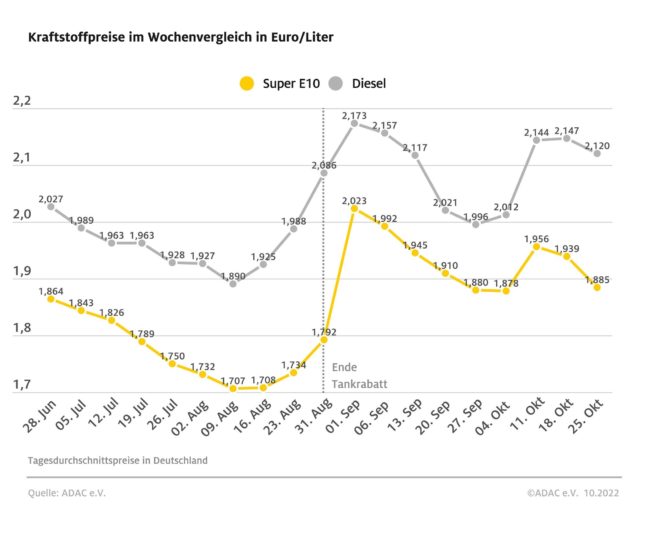 ADAC: Leichte Entspannung an den Tankstellen – Super E10 und Diesel im Vergleich zur Vorwoche um rund fünf bzw. drei Cent günstiger
