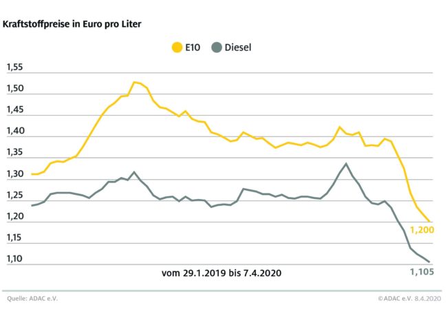 München (ots) Die Corona-Krise hat den Kraftstoffmarkt weiter fest im Griff. Tanken ist im bundesweiten Durchschnitt bereits die achte Woche in Folge billiger geworden. Laut aktueller Auswertung des ADAC müssen Autofahrer für einen Liter Super E10 im Bundesmittel 1,181 Euro bezahlen, das sind 1,9 Cent weniger als in der Vorwoche. Diesel verbilligte sich um 0,9 Cent…
