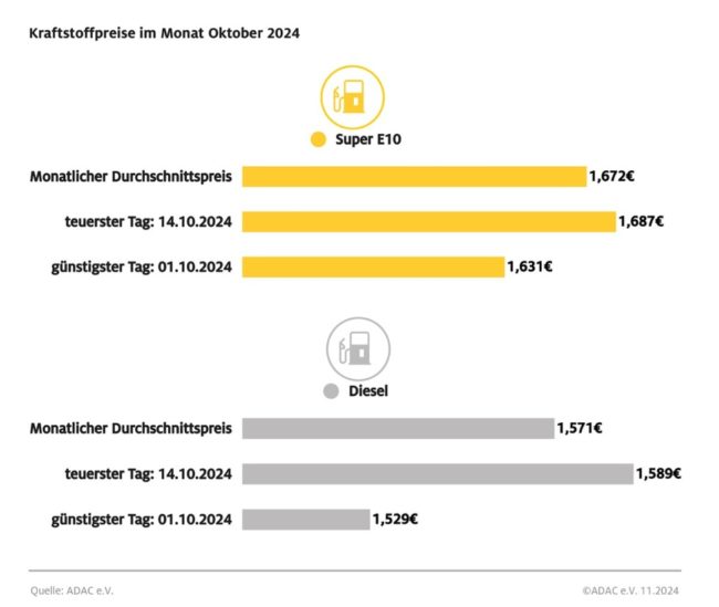 Tanken im Oktober etwas teurer als im Vormonat – Benzin kostete im Schnitt 2,2 Cent mehr, Diesel 2,7 Cent