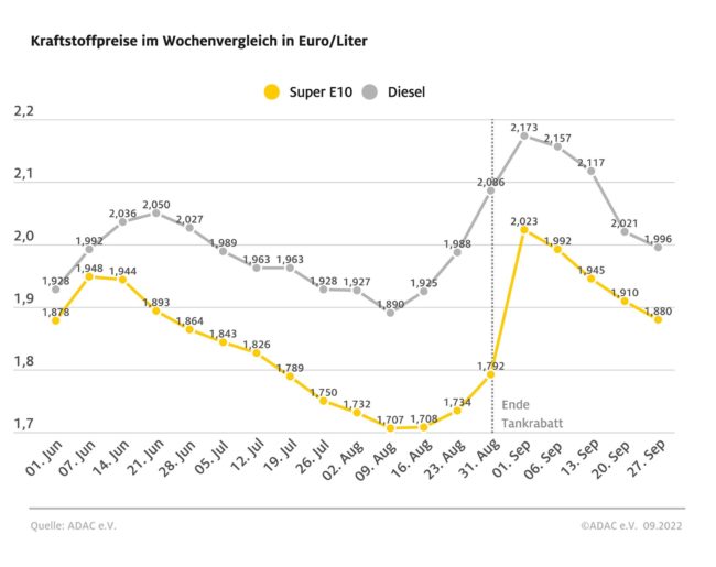 ADAC: Dieselpreis sinkt um fast 10 Cent – Benzin gegenüber Vorwoche um 3,5 Cent niedriger