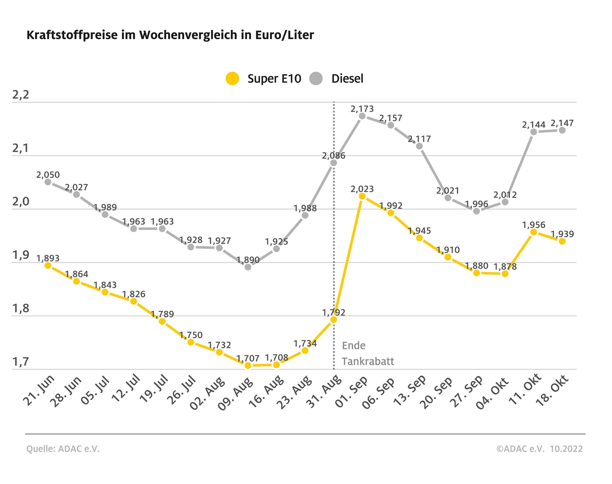 Der Rückgang des Benzinpreises ist eine Folge des um rund vier US-Dollar gesunkenen Rohölpreises (Brent). Dennoch ist Benzin in Relation zum Ölpreis immer noch erkennbar zu teuer, der Rückgang ist bei weitem nicht ausreichend. Die Situation bei Diesel ist weitaus komplizierter. Hier kommen Sonderfaktoren wie die jahreszeitlich bedingte stärkere Heizölnachfrage sowie insbesondere der hohe Bedarf in der Industrie als Gasersatz zur Geltung. Wie sich diese Faktoren entwickeln werden, ist derzeit nicht absehbar.